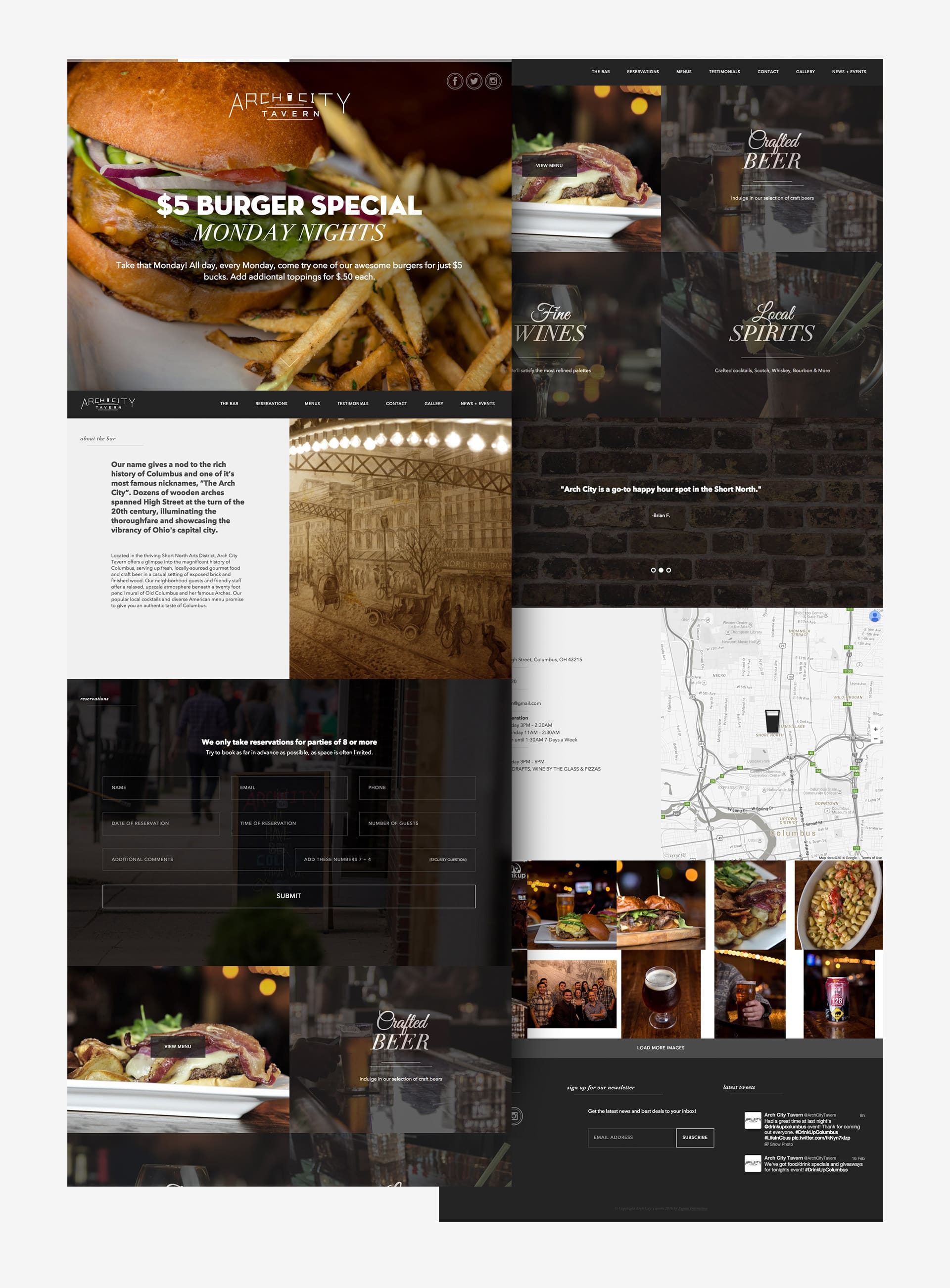 Arch City Tavern, located in the thriving Short North Arts District, embodies the rich history of Columbus. This upscale, yet friendly gastropub serves up fresh, locally-sourced food and craft beer from the region. The revamped web design focused on a simple, linear experience, while maintaining that elegant feel. Through photography, typography and color palette we achieved our goal and helped elevate Arch City above their competition.