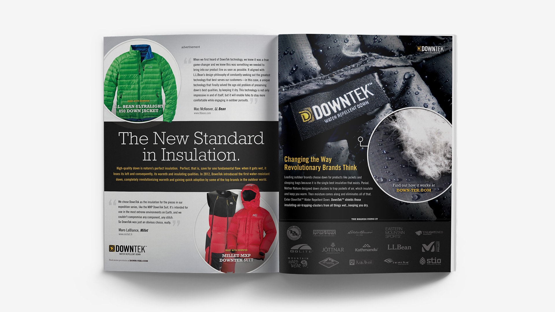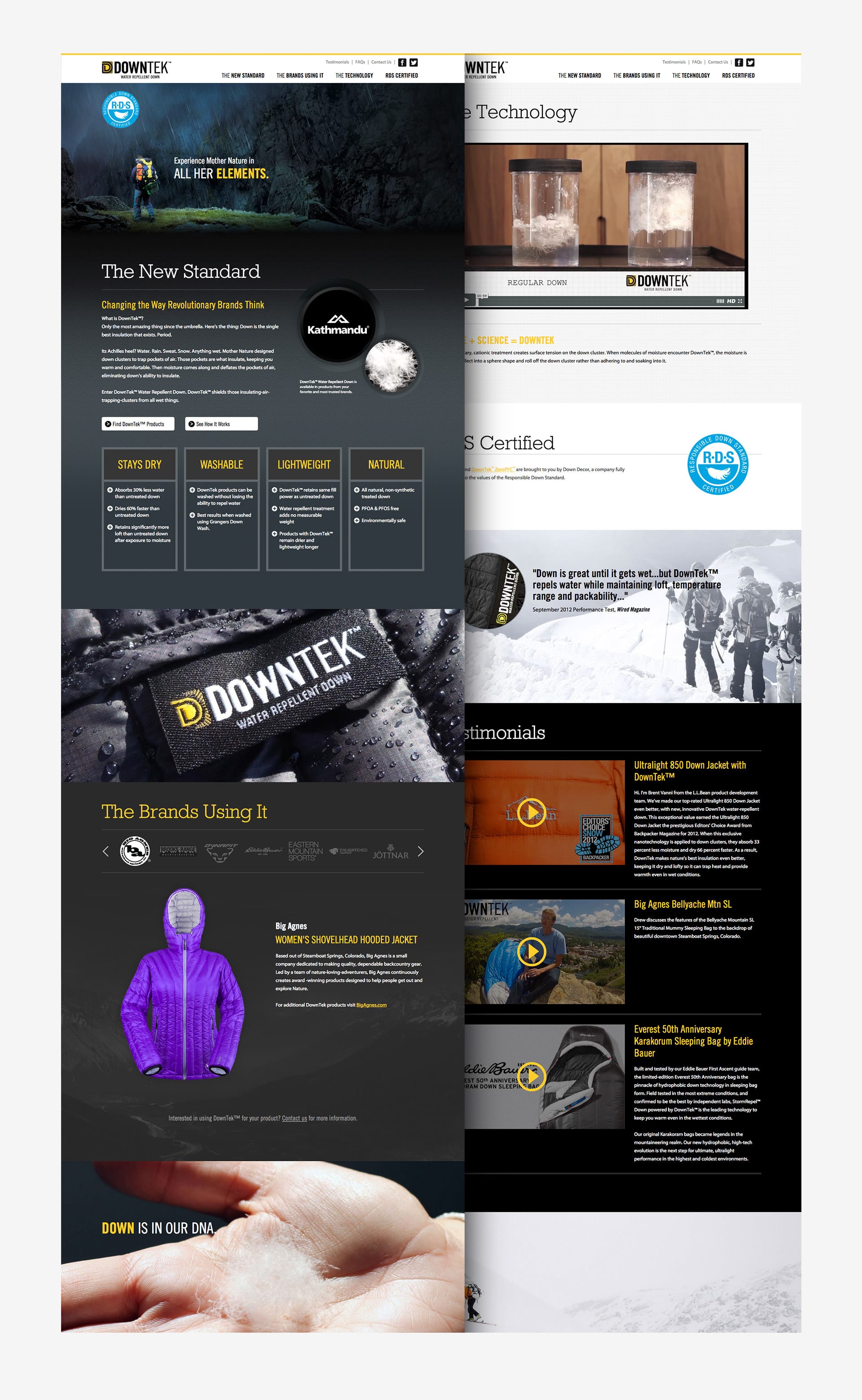 A leader in down insulation, DownTek™ Water Repellent Down™ has revolutionized the way companies and consumers buy insulated down products. As a key contributor in developing the DownTek brand and brand assets, I’ve been involved in projects ranging from brand guide development, print design and web design and development.